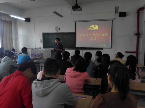 会议伊始,党支部书记张晖同志对2016-2017上半学年党支部工作进行总结及部署2016-2017下半学年工作计划。支部书记张晖同志指出,自十六党支部成立以来,党支部全体党员能严格根据上级党组织指示,组织思想政治理论学习和对中共第十八届六中全会的专题讨论。本学期我们将在上级党组织领导下,继续深入各项政治理论学习工作,并加强实践学习环节。最后支部书记张晖同志强调:党员身份是先进的代表,永远在路上,应该在日常工作生活中做好模范带头作用。