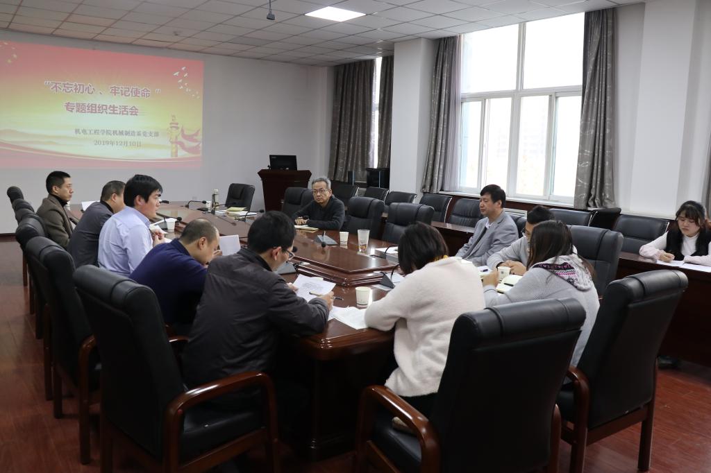 为检验主题教育成效,促进党员守初心、担使命,12月10日下午,机械制造系党支部召开“不忘初心、牢记使命”专题组织生活会,公司党委委员副董事长刘卜出席,机电工程公司党委书记路金龙、经理倪晋平全程参加会议。