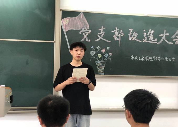 支部书记许格宁首先说明本次开会主要目的、简要说明自身工作调动情况、介绍了本次会议的流程、宣布会议正式开始。接着两名候选人进行了发言。
