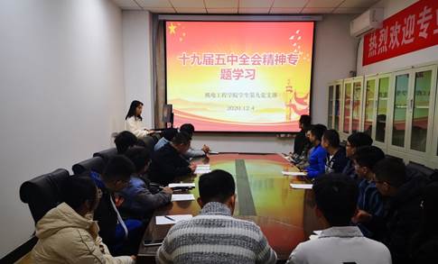 会议伊始,刘昊雨讲到,学习党的十九届五中全会精神是当前全党、全校的重要政治任务,作为员工党员,要发挥主观能动性,深入把握党的十九届五中全会的精神,不同年级员工党员要结合专业学习和学业规划,有的放矢、多维全面地深入学习。全体员工党员和员工干部要在政治理论学习方面走在前、做表率,共同引领掀起学习热潮。随后,他并对党的十九届五中全会基本情况及《中国共产党第十九届中央委员会第五次全体会议公报》、《中共中央关于制定国民经济和社会发展第十四个五年规划和二0三五年远景目标的建议》作了解读。今年的十九届五中全会审议通过了《中共中央关于制定国民经济和社会发展第十四个五年规划和二〇三五年远景目标的建议》,这份文件不仅谋划未来5年发展,还勾画未来15年蓝图,将为今后一个时期中国经济社会发展指明方向。通过此次会议,同学们能进一步加深对党的十九届五中全会内容的理解,切实提高政治理论素养,身体力行,践行党的十九届五中全会精神,以昂扬向上的精神风貌和奋发有为的蓬勃朝气,投入到新时代建设发展的历史征程中,努力成为新时代各项事业的优秀建设者和可靠接班人。