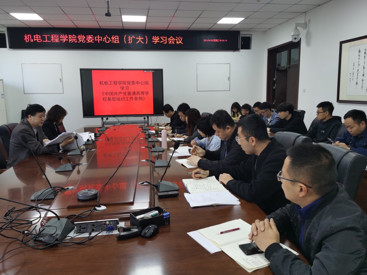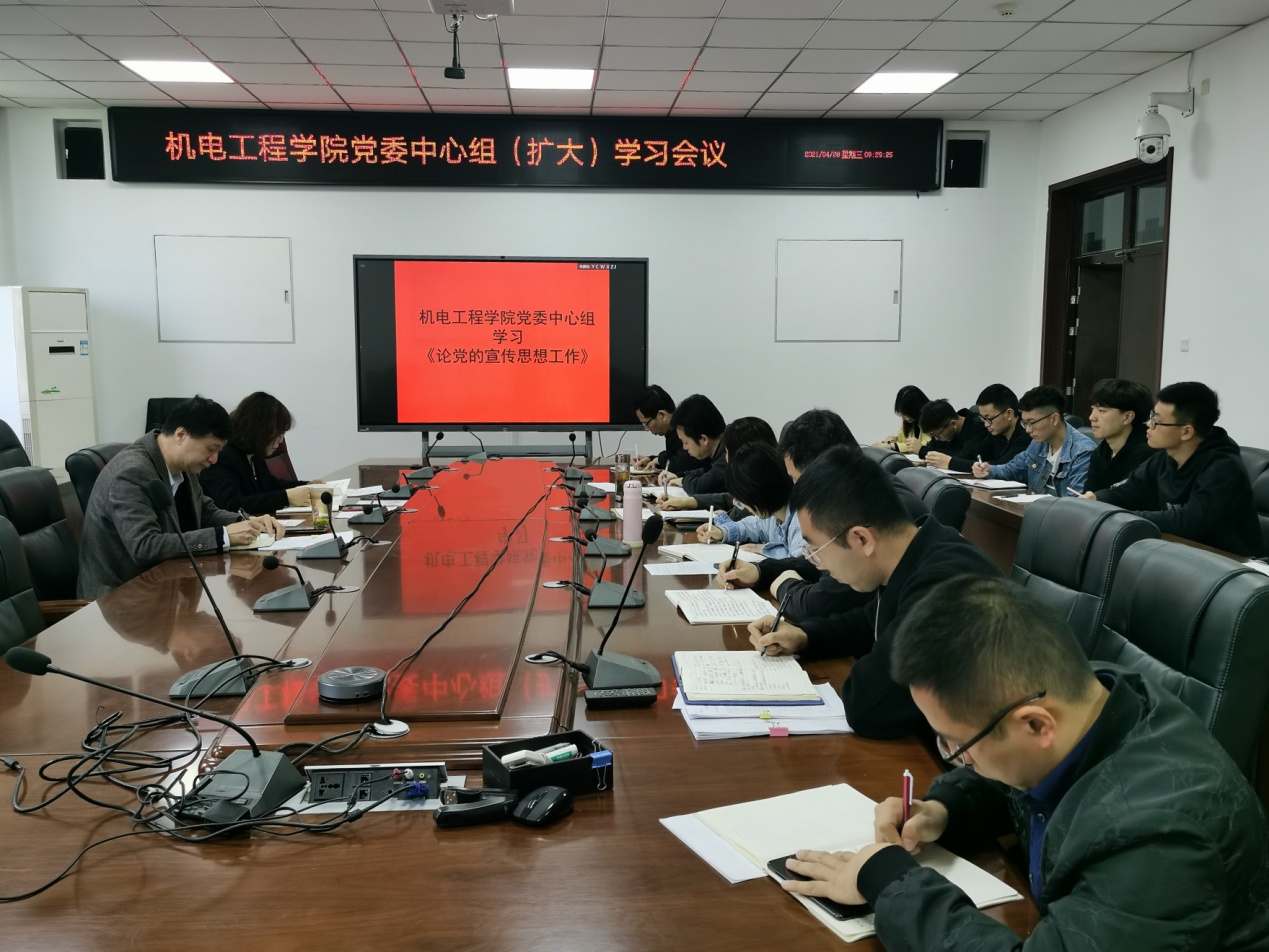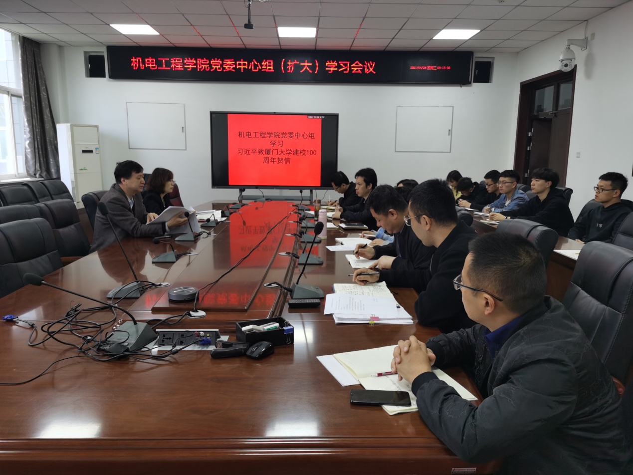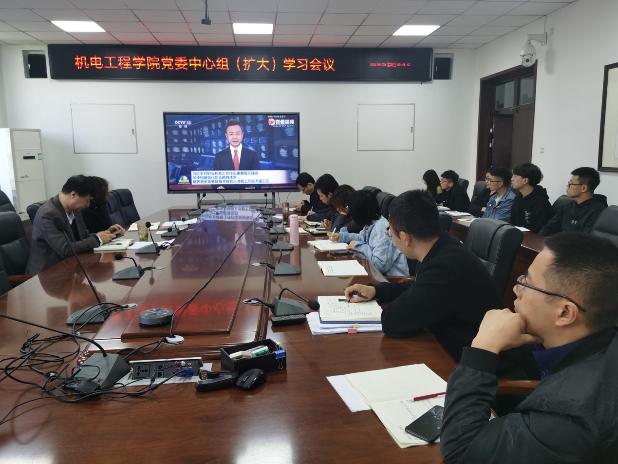 2021年4月28日,机电工程公司党委在工2-310召开中心组(扩大)学习会议,主要学习了《论党的宣传思想工作》、习近平在清华大学考察时的重要讲话、习近平致厦门大学建校100周年的贺信、习近平对职业教育工作的重要指示、《中国共产党普通高等公司基层组织工作条例》。公司党委中心组成员、工会成员、院办主任及党支部书记参加会议,会议由公司党委书记路金龙主持。