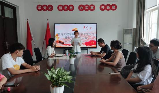 会议严格按照党组织接受预备党员程序,大会开始,由八位发展对象依次向大会汇报个人思想、学习等情况。再由入党介绍人张思琪、杨丽丽、李倩同志介绍发展对象有关情况,由王博同志代表支委会报备八位发展对象情况。随后,八位发展对象回避,与会人员对八位发展对象进行了充分讨论并采取无记名投票的方式进行表决,王博同志代表支部对八位发展对象作出决议。