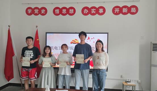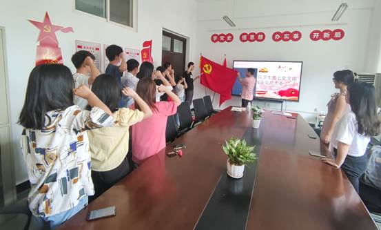 最后,由王博同志领誓,八位预备党员面对党旗进行宣誓。党支部书记唐雅莉老师为八位预备党员颁发正式生日贺卡。