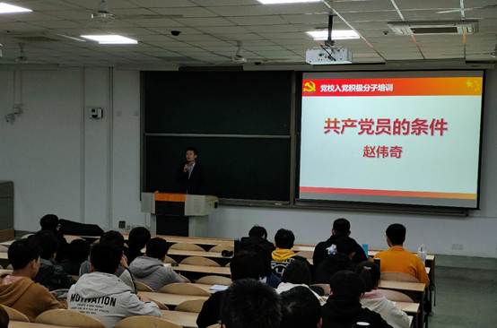本次党课培训,赵老师通过讲解共产党员的条件、共产党员要有政治自觉性和党员发展的程序三个部分来告诉同学们如何成为一个合格的共产党员,赵老师结合同学们的日常生活,生动形象,准确地向同学们介绍共产党员的基本条件,义务及权利,深入浅出,让同学们深刻了解到共产党员的真正涵义。其中,赵老师引用十九大最新修订的《中国共产党章程》阐明申请入党的客观条件及主观条件并着重强调了共产党员要有政治自觉性。最后,赵老师希望同学们提高自己的思想觉悟,早日投身于建设中国特色社会主义现代化强国的事业中去。