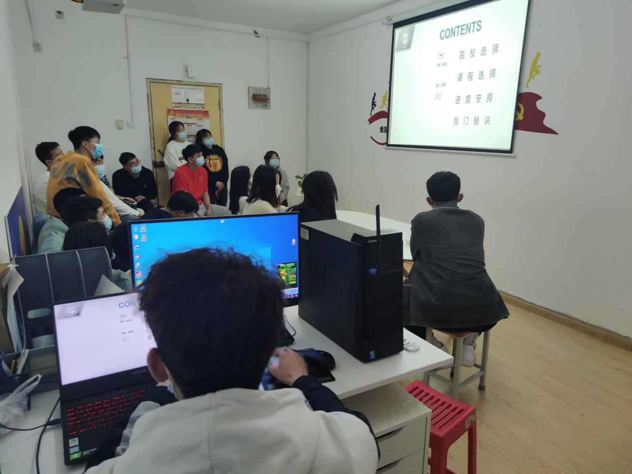 王文强分享了考研报考本校的优势、备考心路历程以及自己的考研阶段安排和参考书目推荐。乔天箭分析了在当今大环境下考研优势与劣势,强调了考研并不是大学的唯一出路,能实现自身价值的方式还有很多,希望支部同志慎重考虑,谨慎选择。张思琪分享了自己的考研跨考经历,并向与会人员讲述了跨考路途上的种种困难与克服困难的方法。