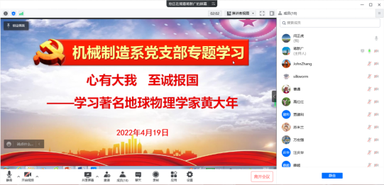 4月19日,机械制造系党支部召开专题学习活动,学习“黄大年式教师团队”精神。支部党员集体学习了《心有大我 至诚报国——学习著名地球物理学家黄大年》、《陕西省“全国高校黄大年式教师团队”先进事迹》。