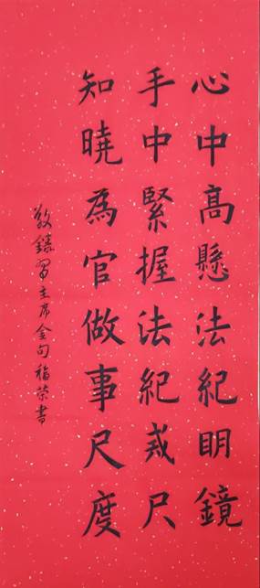 本次活动主题围绕学习宣传贯彻党的二十大精神、宣传廉政文化以及发扬中国传统文化,邀请到书法协会会员和书法爱好者通过线上、线下两种方式参与创作。经过一段时间的准备,精选出部分投稿作品悬挂于一公寓辅导员工作站内展览,那些引领方向、凝聚力量的重要论述一字一句隽永于水墨之中,同学们用自己的作品展示了书法的独特魅力。