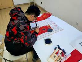 活动中,几位热爱书法的同学来到作品展现场,尽情挥洒泼墨,现场为大家展现了书法的无穷魅力,同时向大家讲述了学习二十大的心得体会与自己对未来的规划与期望。