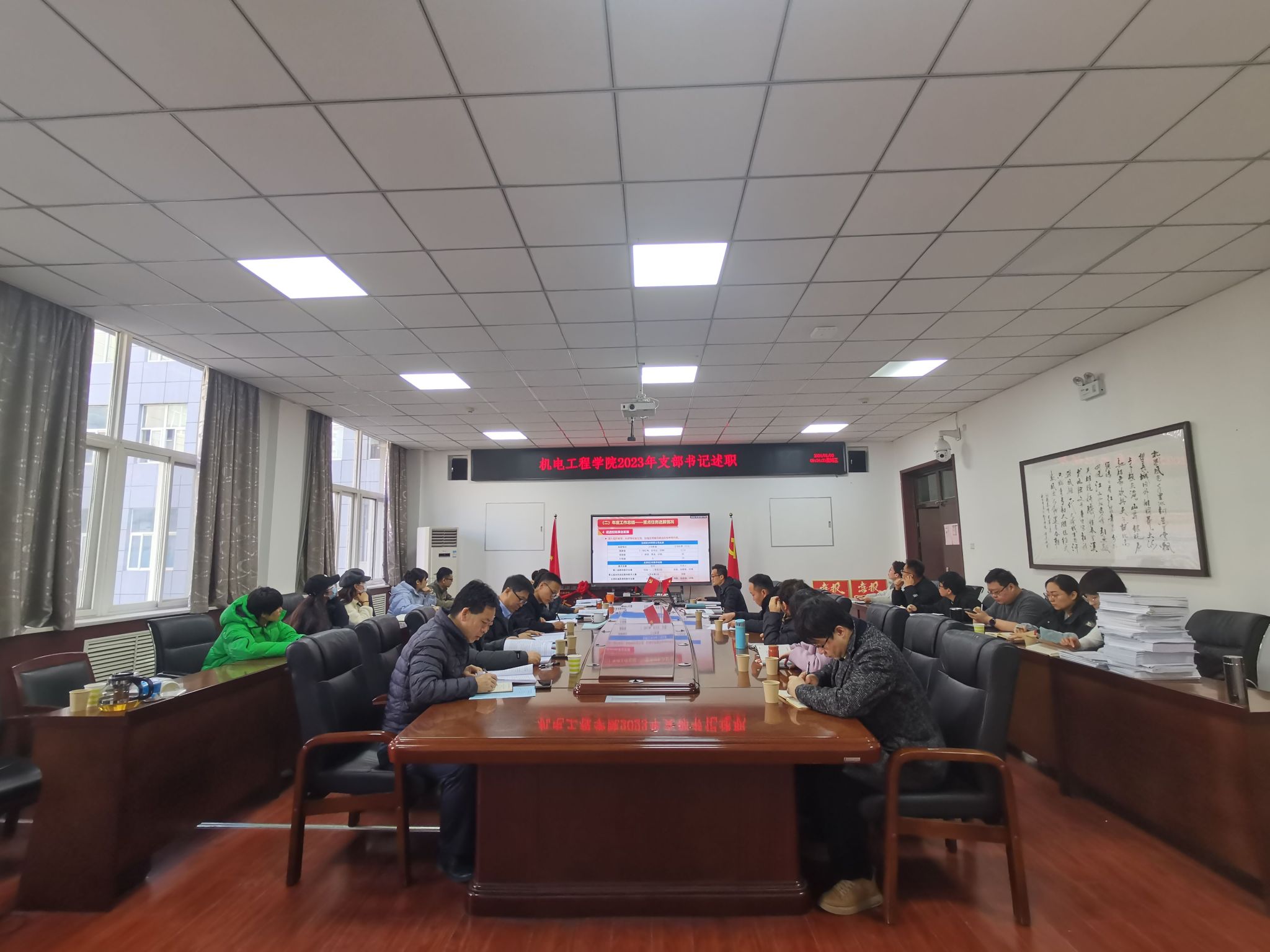 22名支部书记递交述职报告,其中有8名党支部书记现场述职。围绕支部建设的职责和要求,从政治建设、支部班子建设、党员队伍建设、工作业绩以及学习贯彻习近平新时代中国特色社会主义思想主题教育开展情况等方面进行了述职,既总结了支部本年度所取得的成绩,又深入分析了存在的不足。