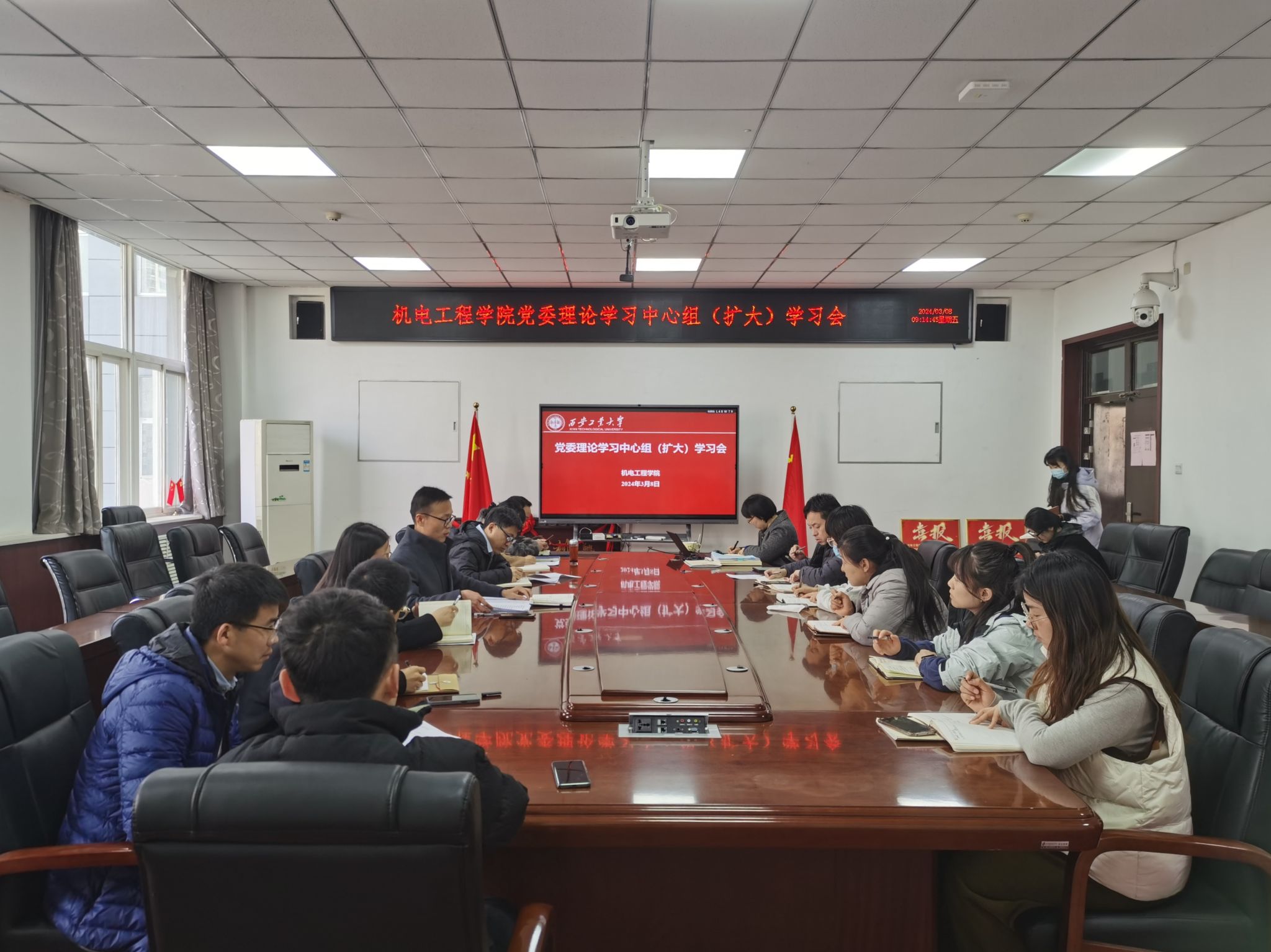 会议集中学习了2024年政府工作报告、习近平在学习贯彻习近平新时代中国特色社会主义思想主题教育总结会议上的讲话、习近平在参加江苏代表团审议时的讲话、习近平在中共中央政治局第十一次集体学习时的讲话。参会人员围绕“认真学习全国两会精神,持续推进公司高质量发展”进行主题研讨交流。会议强调,要把学习宣传贯彻落实习近平总书记重要讲话和两会精神作为当前一项重要政治任务,掀起学习热潮,确保党中央决策部署和全国两会精神落地生根、见到实效。