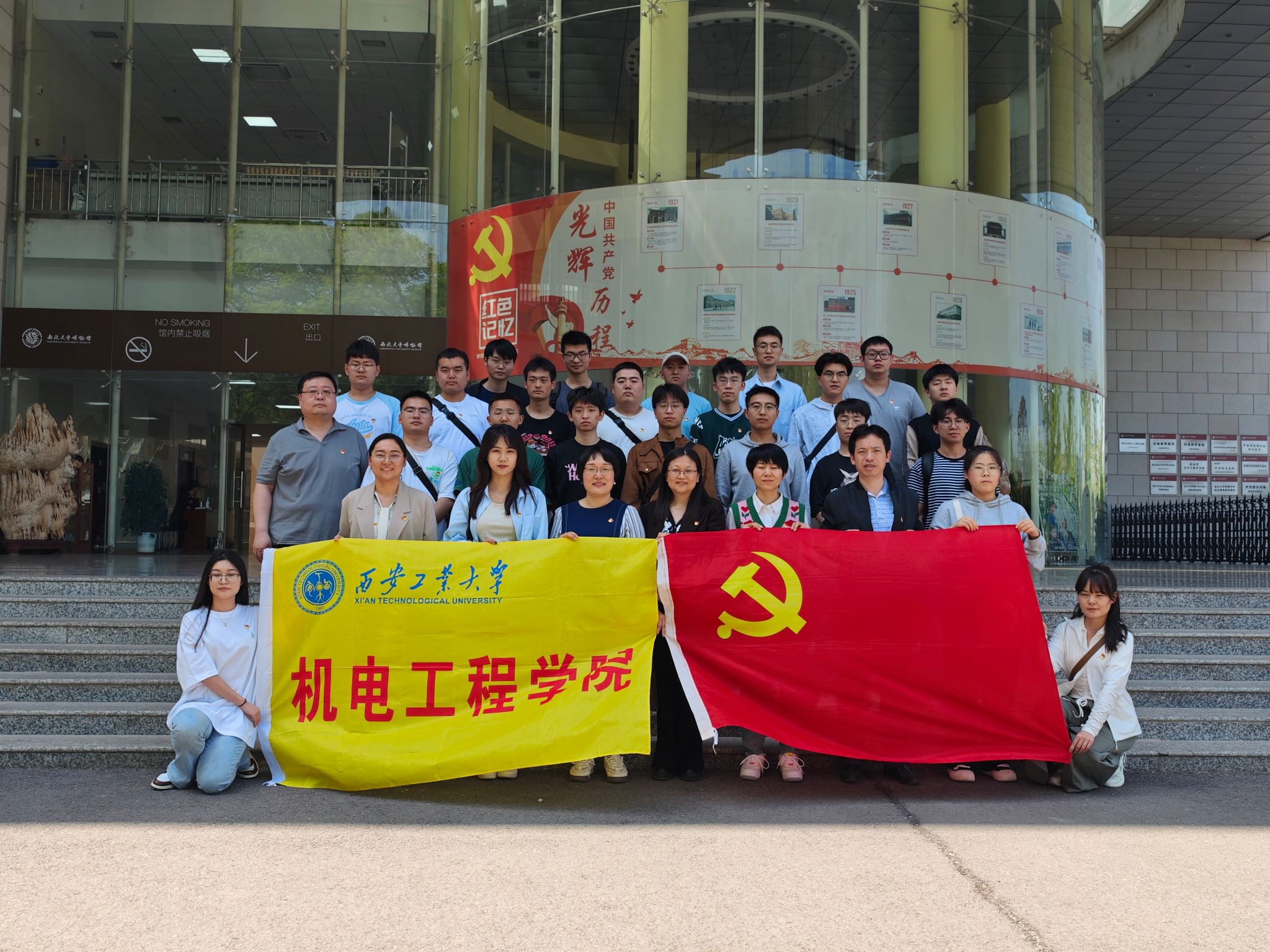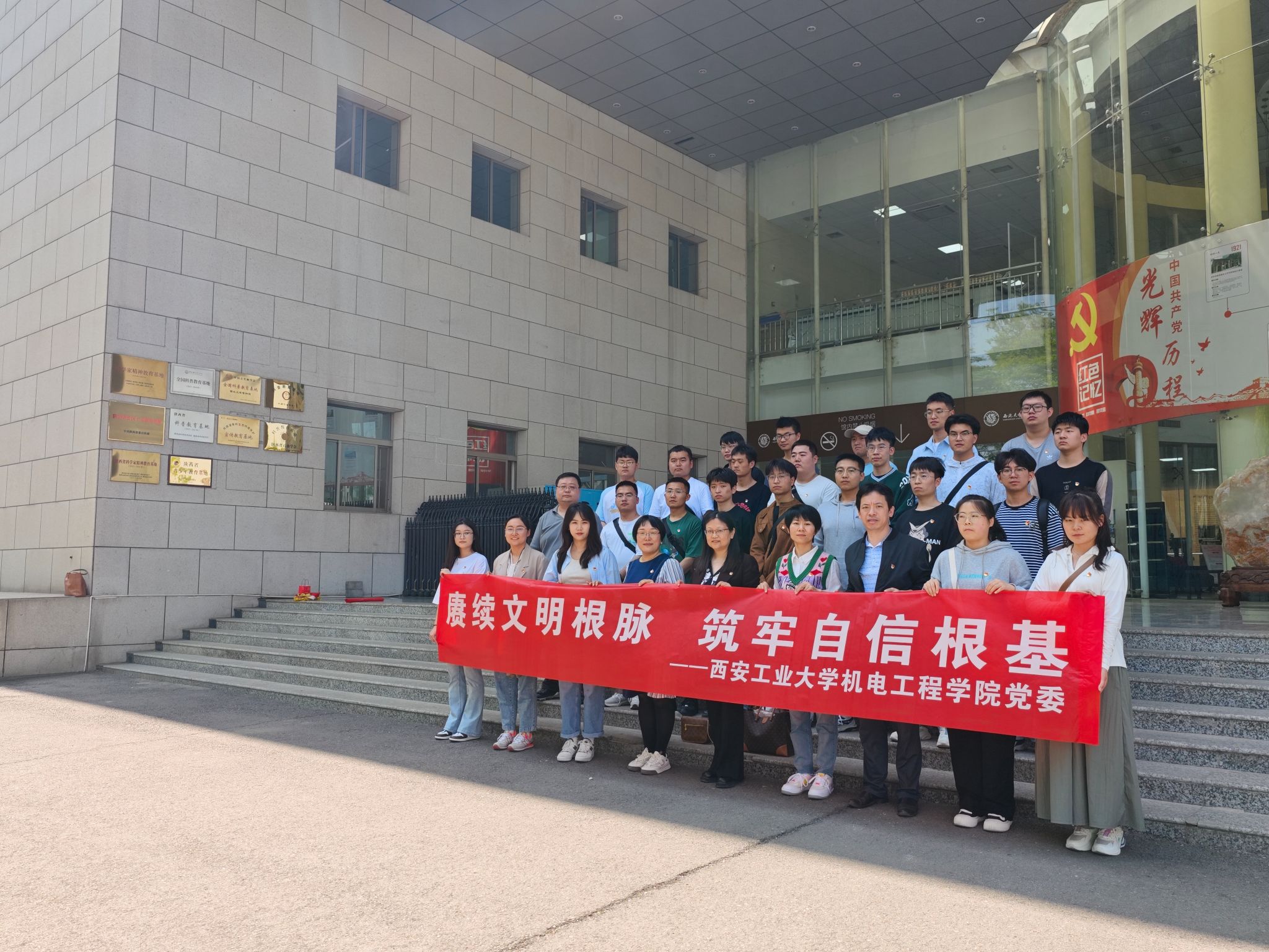 为深入学习贯彻党的二十大精神、全国两会精神,扎实推进学习贯彻习近平新时代中国特色社会主义思想主题教育,同时进一步提升员工党员的科学文化素养,厚植爱国情怀,4月12日英国上市公司365研究生第二、八党支部及本科生第二、三、四党支部赴西北大学博物馆联合开展“科学报国守初心,争做时代‘大先生’”、“赓续文明根脉,筑牢自信根基”主题党日活动。本次活动由员工党支部书记带队,英国上市公司365副经理曹蔚、党委委员张晖、党委组织员张岩参加。