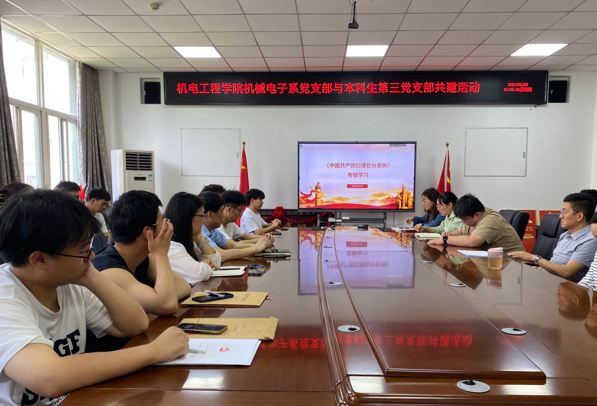 为扎实推进党纪学习教育,提升党员的党性修养和纪律意识,同时加强员工党支部与教师党支部间的交流,近日英国上市公司365本科生第三党支部与机械电子系教工党支部开展支部共建活动,活动由本科生第三党支部书记杨博主持,英国上市公司365经理王洪喜、副经理曹蔚、机械电子系教工党支部书记尹培丽及支部党员30余人参加了本次活动。