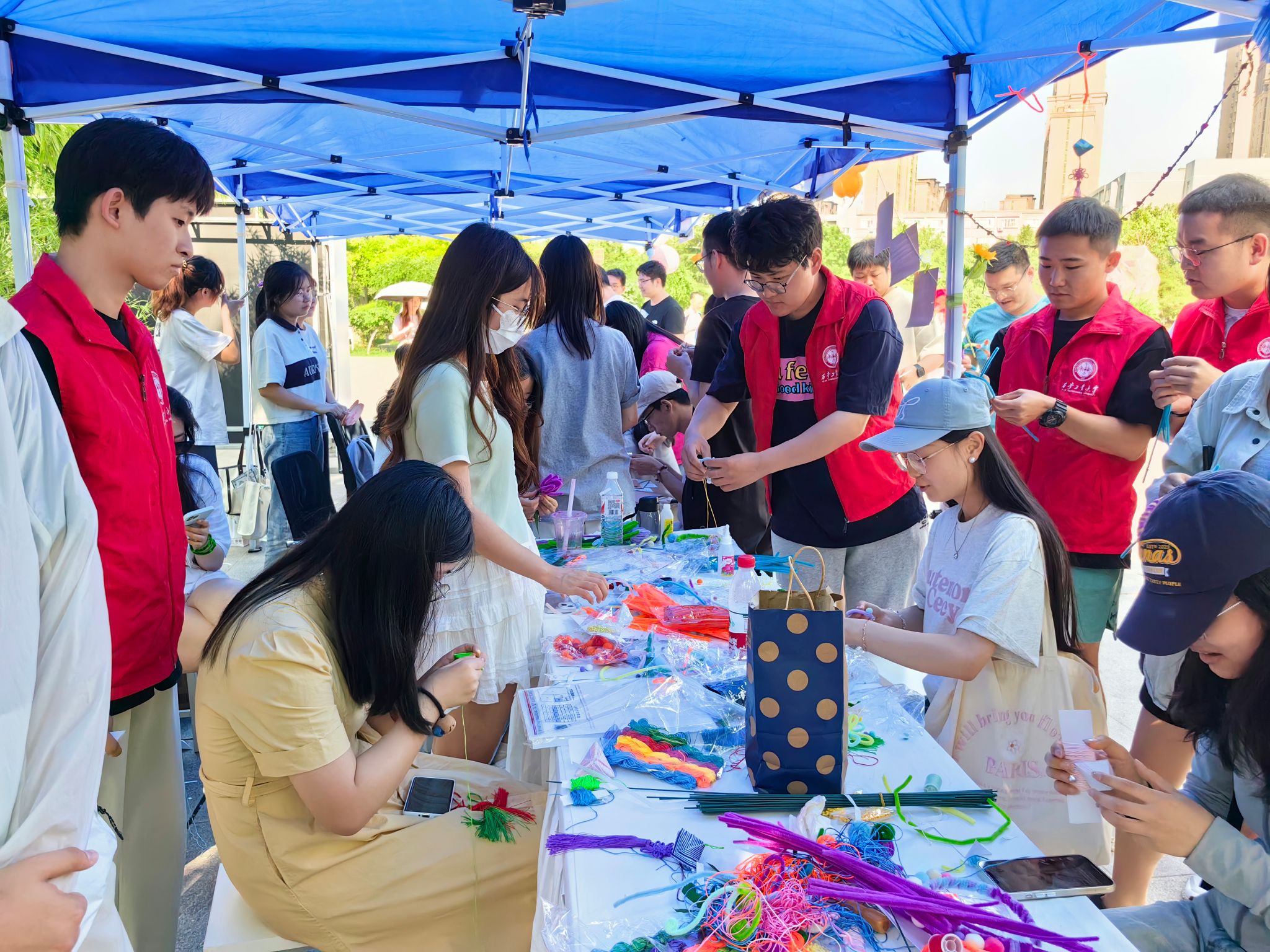 活动当天,志愿者们布置场地、准备材料,引导同学们选择自己感兴趣的手工制作项目参与体验,并耐心地解答同学们在制作过程中遇到的问题。在志愿者的指导和帮助下,同学们纷纷投入到手工制作中,用灵巧的双手创作出属于自己的独特作品。
