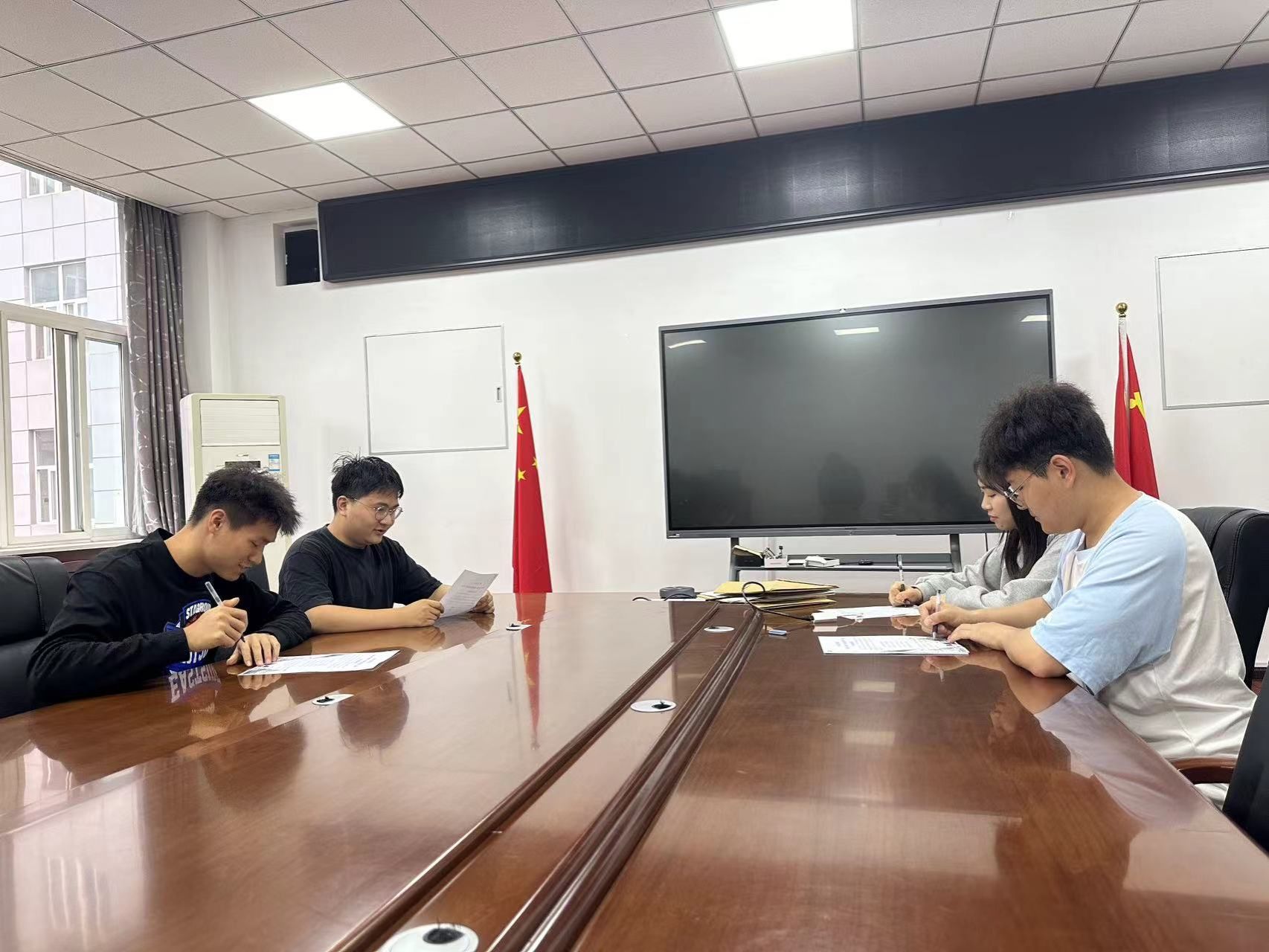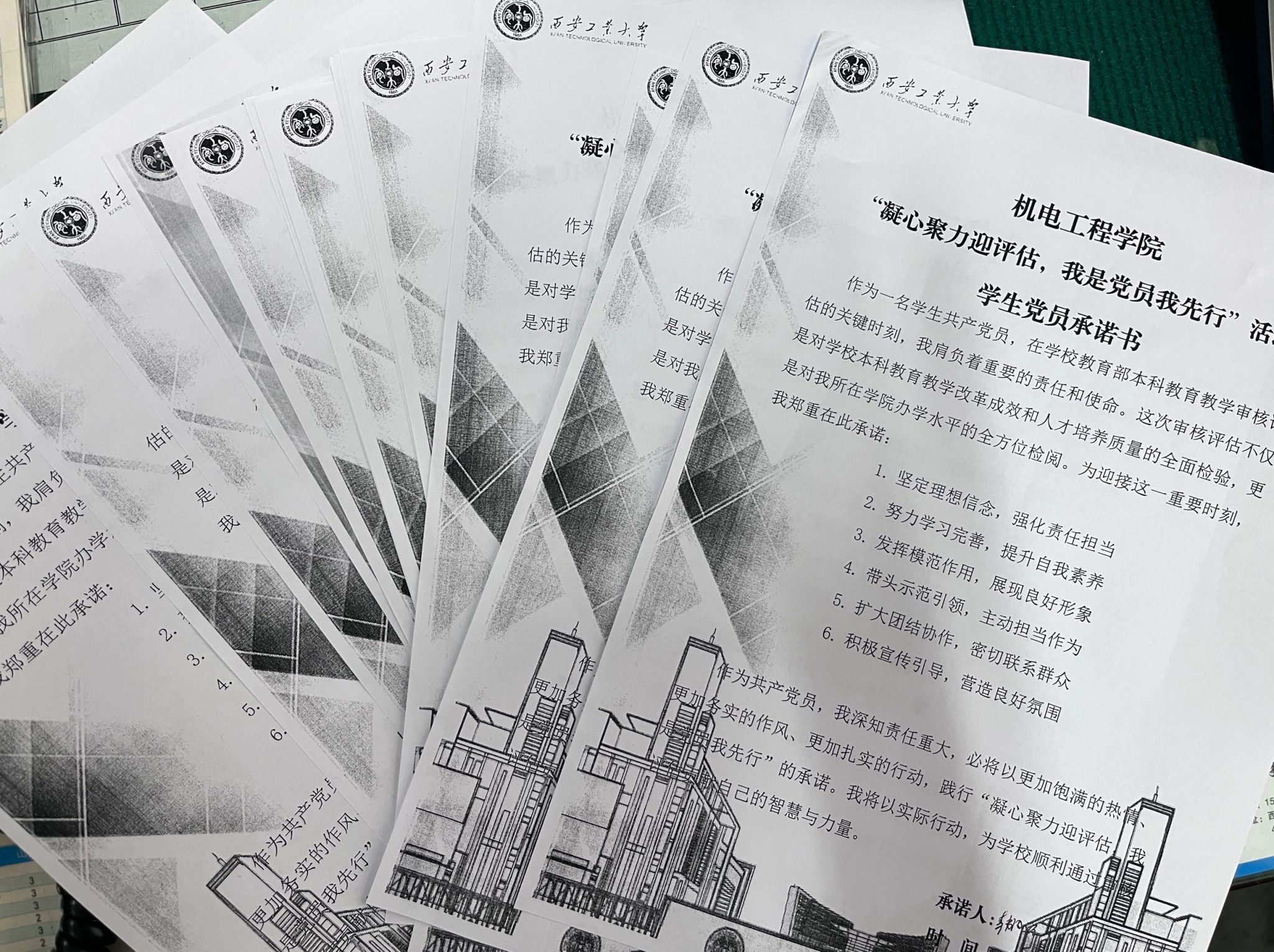 随后,在支部书记的带领下,全体党员起立,面向鲜红的党旗,郑重宣读承诺。党员们从“坚定理想信念,强化责任担当”“努力学习完善,提升自我素养”“发挥模范作用,展现良好形象”“带头示范引领,主动担当作为”“扩大团结协作,密切联系群众”“积极宣传引导,营造良好氛围”六个方面,作出了具体而坚定的承诺。宣读完毕,党员们在承诺书上郑重签下自己的名字,每一笔一画,都凝聚着党员们对评估工作的决心和信心,也标志着英国上市公司365研究生第六党支部在迎接评估工作中迈出了坚实的一步。