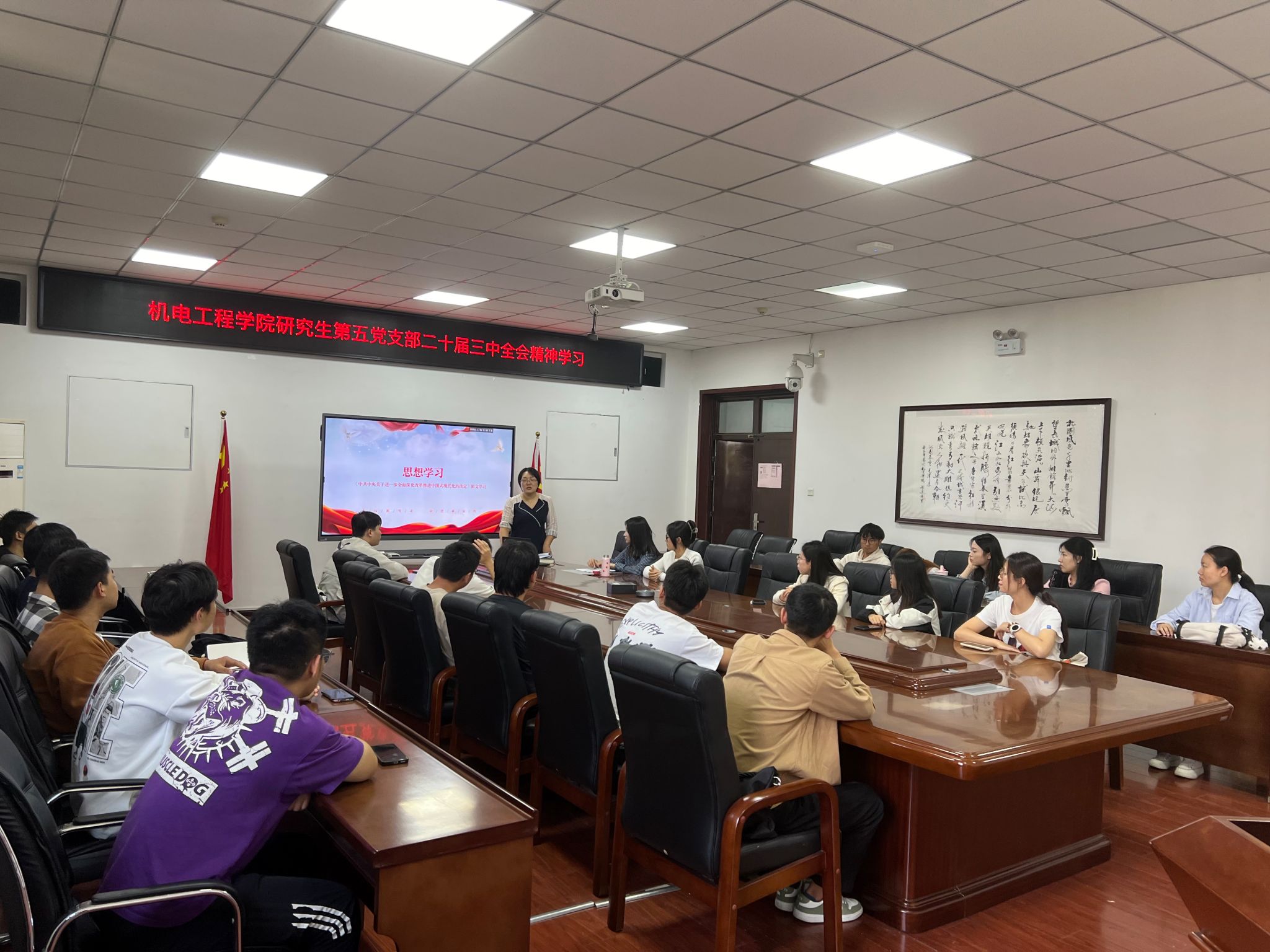 研究生第五党支部于10月14日工2-310组织开展了深入学习贯彻党的二十届三中全会精神的专题学习。本次会议由支部书记张岩同志主持,研究生第五党支部全体党员参与。