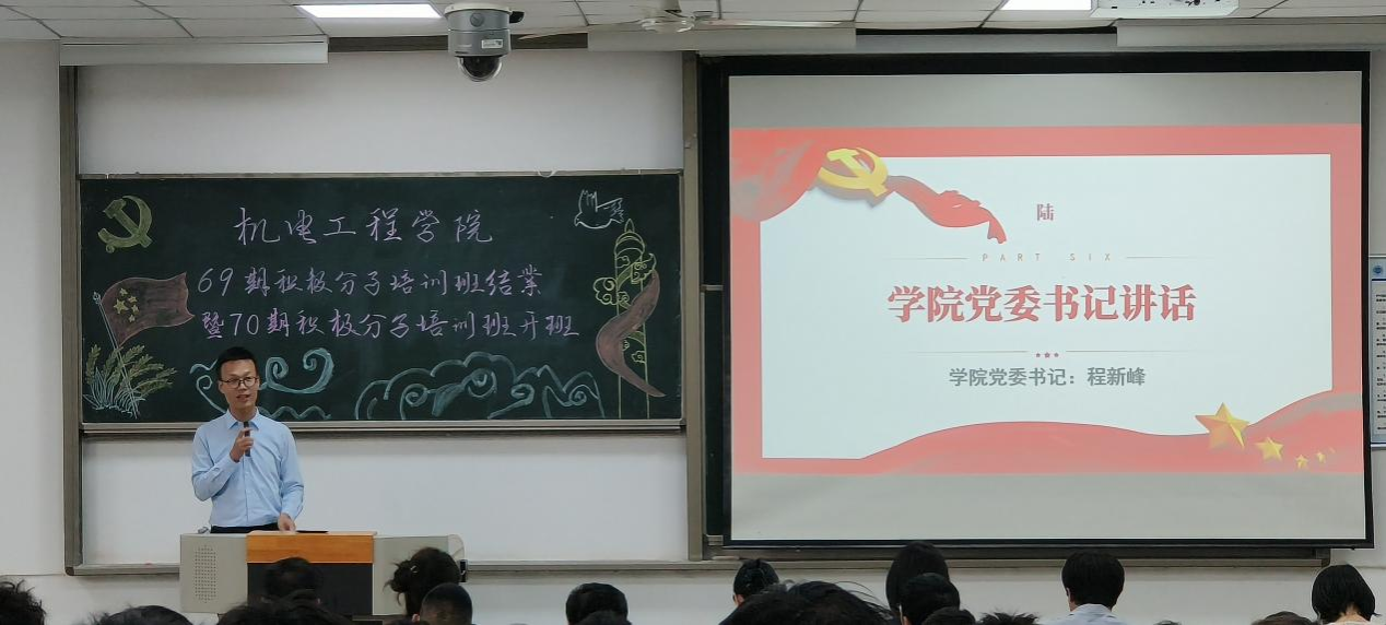 最后,程新峰总结讲话。他指出,入党积极分子培训班不仅是基础理论学习的重要平台,更是引导同学们深入理解党的理论和党的精神实质的关键途径。针对本次培训,他向全体学员提出三点要求:一是要提高认识,端正入党动机;二是将学习和实践紧密地结合,发挥模范带头作用;三是要严格要求自己,遵守培训纪律。提高学习效果,真正做到学有所思,学有所获,学有所得,能够顺利地毕业,争取早日加入中国共产党。