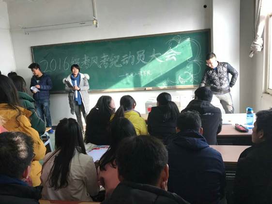 通过本次大会,对2016级迎接期末考试的考风考纪做了良好的动员,同时,对在校的剩余时间做了良好的安排,在对员工平安、高效向寒假过渡起到了良好的作用。