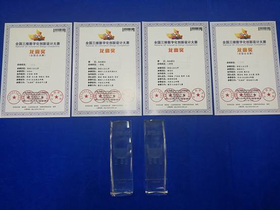 在2017年第10届全国三维数字化创新设计大赛全国现场总决赛中,公司张涛等同学的“Infinte”团队获“逆向设计大赛”方向1等奖,樊宏运等同学的“相信自己”团队获3等奖;李锦涛等同学的“GWR”团队《Gemini Wash Robot》项目获“数字工业设计大赛”方向2等奖,张家旺等同学的“ID”团队《双形态战地机器人》项目获3等奖。