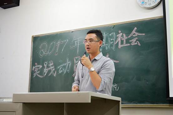 大会伊始。黄彦军老师致开场白,并通过公司相关文件通知向参会人员介绍2017年暑期社会实践的详细内容,并对今年社会实践的重要项目、热点议题、政策支持等方面进行了深刻的解读。同时,黄老师还结合往年暑期社会实践所出现的问题向参会人员提出了要求:各实践队要加强安全防范措施;实践内容要主题鲜明,重点突出;要注重社会反响,加强宣传力度。院团委宣传部部长刘浩浩向参会人员重点说明了本届社会实践工作部署和安排,要求各实践队要保质保量按时完成各项工作。