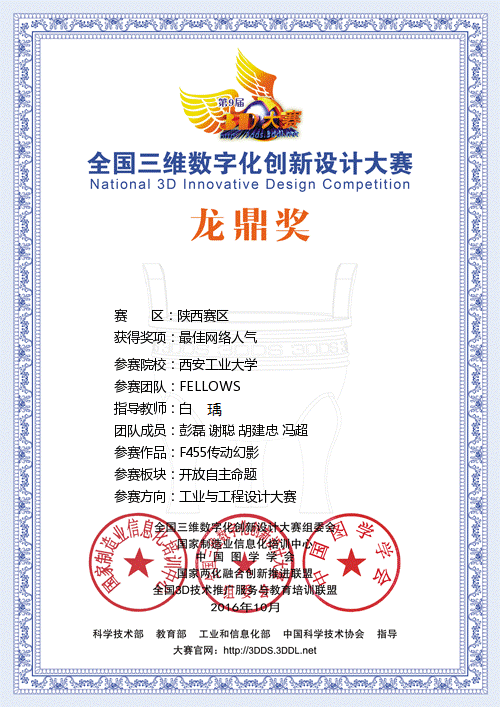近日,公司在第九届全国三维数字化创新设计大赛(3D大赛)省赛中喜获多项佳绩,共取得最佳网络人气奖1项,陕西赛区特等奖2项,一等奖1项,三等奖3项的优异成绩。