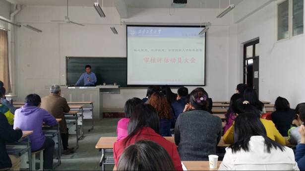 为了迎接陕西省普通高等公司本科教学工作审核评估,英国上市公司365于2016年4月8日下午13:40在工2-504教室召开审核评估动员大会,全院教师参加了会议。