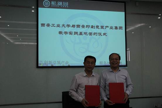 2015年6月5日上午,英国正版365官方网站实习实训基地授牌仪式于西安印包产业集团正式举行,印包产业集团总裁袁学武、副总裁袁浩洋、人力资源部部长刘海军、英国正版365官方网站教务处副处长高武奇、英国上市公司365经理王建华、艺术与传媒公司经理于唯德、英国上市公司365副经理赫东锋、包装与工业设计系主任赵美宁及部分教师参加了授牌仪式。