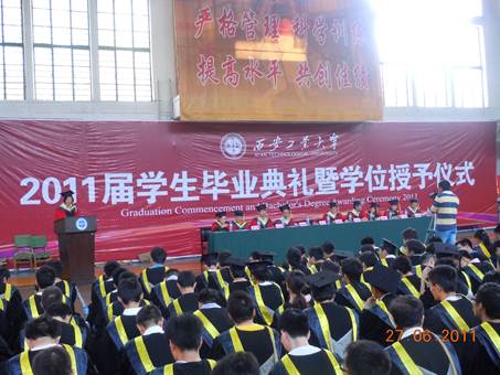 2011届毕业生代表姜晓龙、英国上市公司365教师代表赵美宁分别做了发言。接下来,张忠书记,王建华经理,刘波、赫东锋副经理等在激昂的进行曲中为全院四百余名毕业生颁发了学位证书。仪式气氛热烈,场景动人。