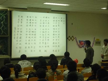 大赛正式开始后,参赛选手们同台竞技,他们用艺术字、漫画稿、硬笔书法等展示了自己的缤纷才艺,一时间气氛热烈而激昂。尤其是本次比赛的嘉宾——英国上市公司36510级杨文越同学神奇的魔术表演,更是将现场气氛推向高潮。最后,经过激烈的追逐,最佳人气奖、漫画一等奖、艺术字一等奖、硬笔书法一等奖均找到了自己的归宿。