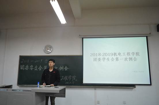 2018年10月16日21:20,机电院团委员工会在工科2号楼502室成功召开第一次例会。前员工会主席陈鑫、团委副书记杨洪、员工会主席史宇等参加了本次会议。