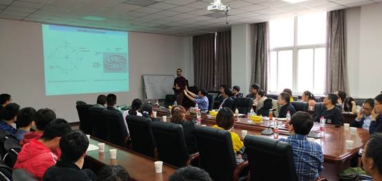 会上,曹老师首先为大家介绍两位与会学者,并向他们表示感谢,参会人员也报以热烈的掌声。稍后,纳吉布卡塞姆博士发言,提出了谐振微陀螺仪的设计和实现方法。值得注意的是,研究表明谐振微陀螺仪达到最佳灵敏度,其感应频率比激励频率高四倍。纳吉布卡塞姆博士的学术报告带给大家一些科研上的新角度和启发,获得一致好评。随后,大连理工大学的赵剑教授发言,赵教授报告的主要内容为高灵敏度电容式加速度计创新设计、两类微加速度开关的动力优化设计、谐振式加速度计的创新设计、车辆智能感知系统中电路与结构系统级优化设计。赵教授的报告会内容丰富,具有很强的前沿性,使得前来参加报告会的研究生们获益匪浅。