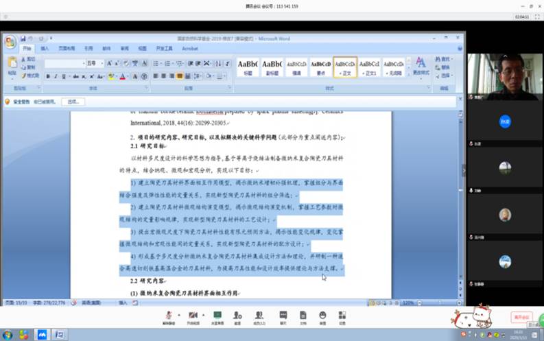 会上,各位老师通过屏幕共享汇报了各自的国基金申报工作进展,并针对每一位老师的申请书分别进行了深入细致的讨论。讨论内容包括评审专家意见的修改情况、科学问题的深度凝练、研究内容的优化与重点凸显,以及申报书的书写规范,如内容图表的调整、申请书语言文字表述等。国基金申报经验丰富的老师们为年轻老师的申请书出谋划策,提出了一系列建设性的意见与建议。