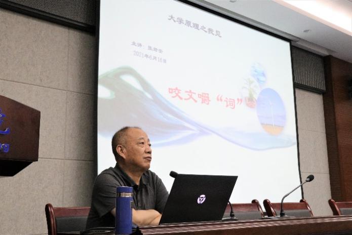 随后,张君安教授结合自身经历,详细地介绍了时代变迁的速度、中国大学应该坚持什么样的方向、大学的专业,学科怎么样理解,教学环节、教学活动怎样有效开展。张君安指出研究生在科学研究中应明确具体方向,在千变万化的世界中应时刻思考从而保持清醒的认识。