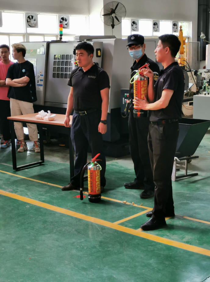 演练首先由校保卫处杨涛老师和郭园华老师就消防安全基础知识、灭火器的使用、火灾应急逃生要领进行了模拟及讲解。接着演练过程在机电实验中心的大力配合下,参与消防演练的全体师生紧张有序地进行常规灭火器的使用以及火灾应急逃生的演练。