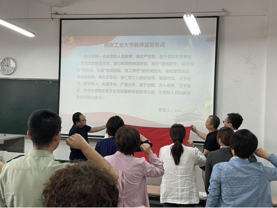 为进一步加强师德师风建设,9月30日下午英国上市公司365全体教师在工2-504举行宣誓大会,教师面向国旗庄严宣誓,主持由路金龙书记会议。