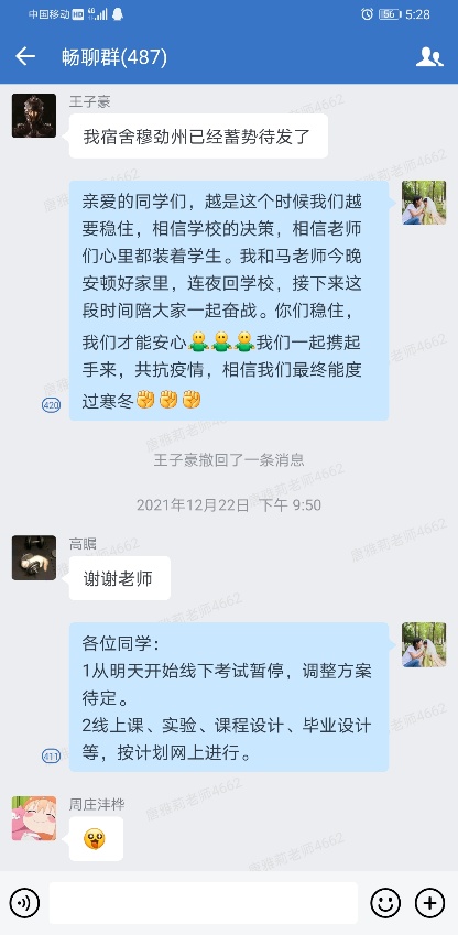 集团的生活日复一日的进行着,在全校师生齐心协力的奋战下,随着一轮又一轮核酸零阳性,公司一天天接近安全,眼看着即将迎来胜利的曙光。而让她最放心不下的却是家人。12月30号,唐雅莉接到家人电话,才知道家里只剩下半个大白菜和一颗土豆,孩子吵着想吃肉好几天了,家里老人不会用线上买菜软件。两位老人和小孩还在疫情漩涡的最中心雁塔区,一天一次的核酸检测对他们来说都是一种考验。最危险的时候却不能陪在孩子和家人身边,每次想到这,她心里满是愧意。