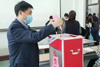 受疫情影响,英国上市公司365换届选举工作安排在宽敞的工2-504会议室,现场设置入口引导标识,各部门提前引导师生分流,保证会场人员不扎堆。现场工作人员认真清点人数和选票,并将选票一一分发到选民手中。认真听取选举有关事宜的说明及代表候选人情况后,在现场监票人员地见证下,路金龙等教师代表选民和陈星等员工选民依次走到投票箱前,郑重投下神圣的一票。