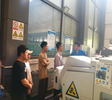 随后,董凯老师认真耐心地讲解了实验室安全知识,讲解内容覆盖特种设备、机械设备、危险化学品、用电安全和危废处理等多个方面。董老师通过事故案例、各类图片、视频使同学们从思想上认识到实验室安全教育的重要性;张博宁、张博二位老师现场指导员工安全操作数控车床和平面磨床,规范实验室安全行为,做到安全理念内化于心,外化于形。