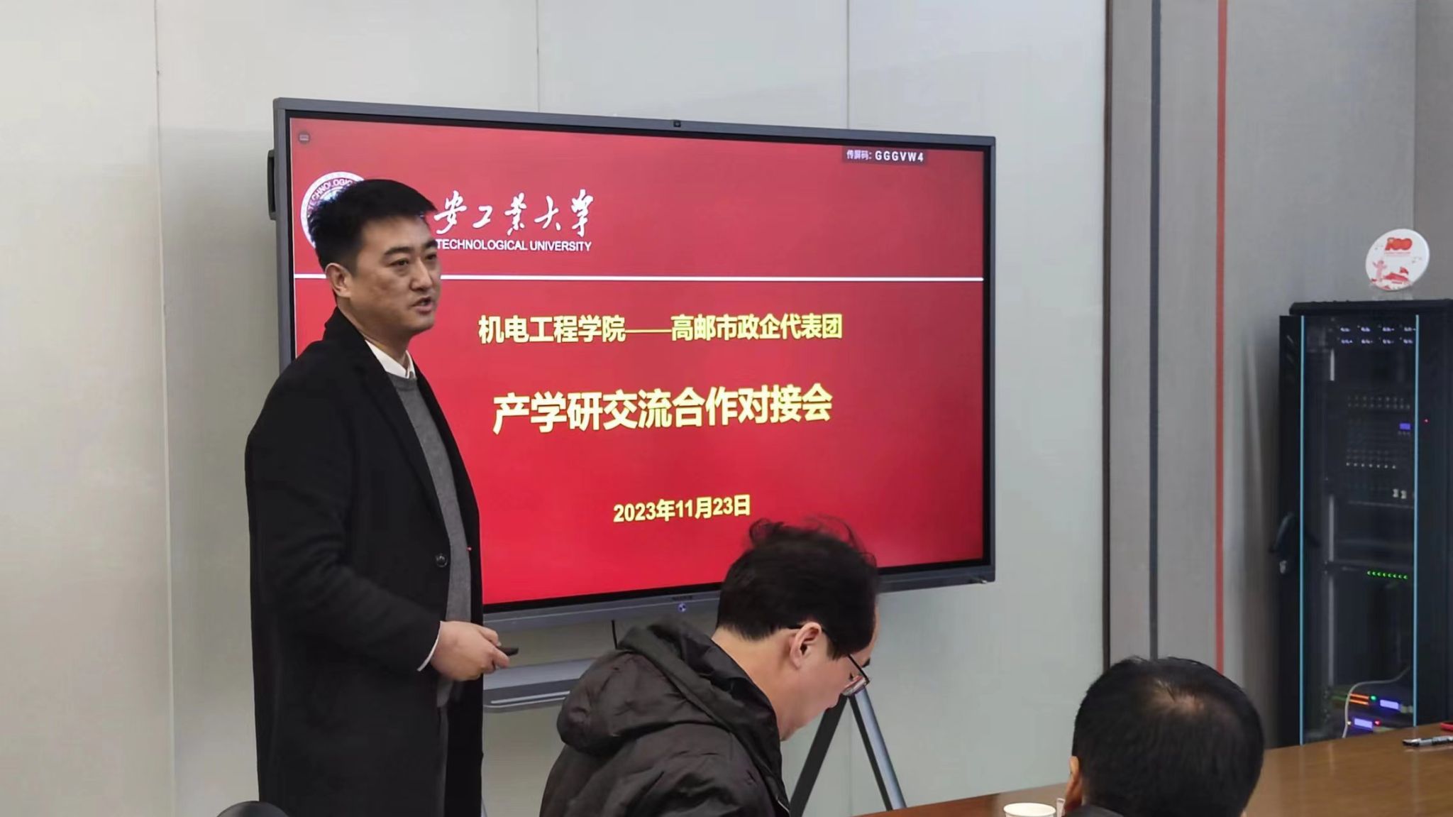 梁闪慧致欢迎词,对高邮市政企代表团的到来表示热烈欢迎,并详细介绍了公司发展史、科研整体情况,并希望以本次活动为契机,进一步加深双方了解,拓展合作领域,发挥英国正版365官方网站在科研、人才培养等方面的优势,助力高邮市经济社会高质量发展。