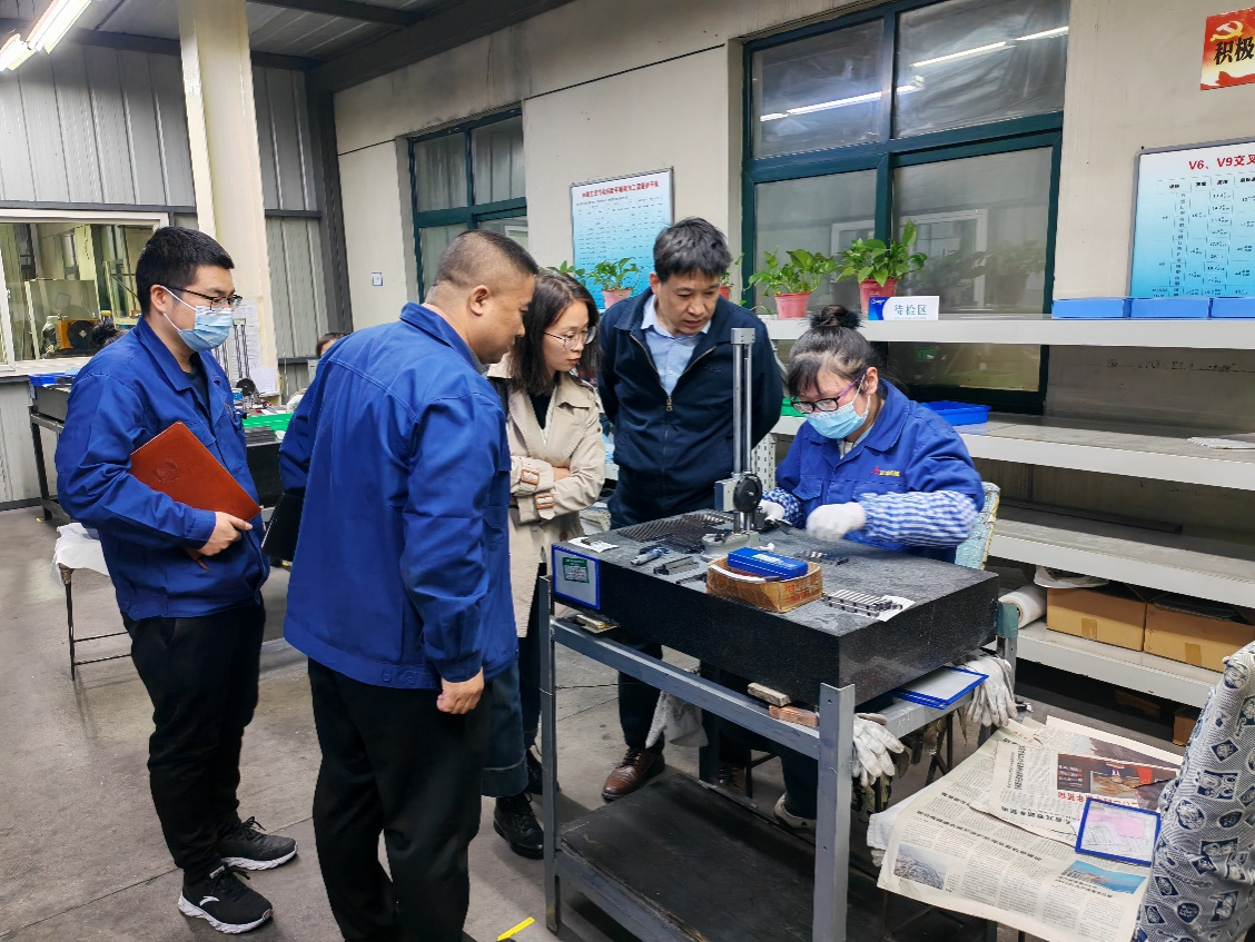 在崔经理和邱经理的带领下,王洪喜一行还参观了蓝博机械有限公司,详细了解企业生产工艺流程、设备运行情况以及员工的操作技术,对企业的生产和管理水平给予了高度评价。