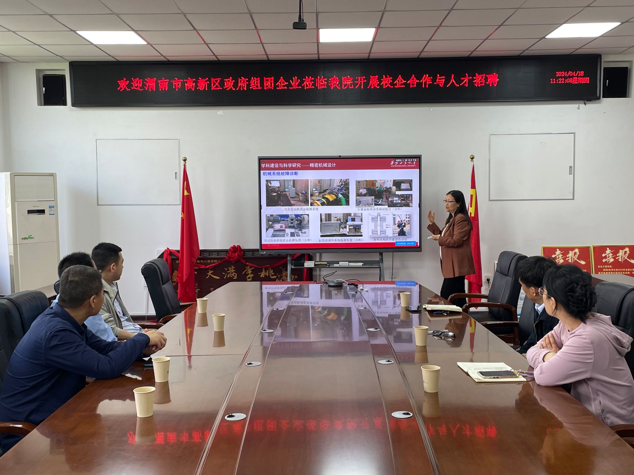 4月18日,渭南市高新区人才办主任谷卓同人才办邢璐璐、屈斌,陕西奥尔德机械有限公司总经理李向阳一行,来英国上市公司365开展校企合作和人才招聘。英国上市公司365经理王洪喜、党委副书记姚敏茹、副经理曹蔚以及毕业班辅导员参会。