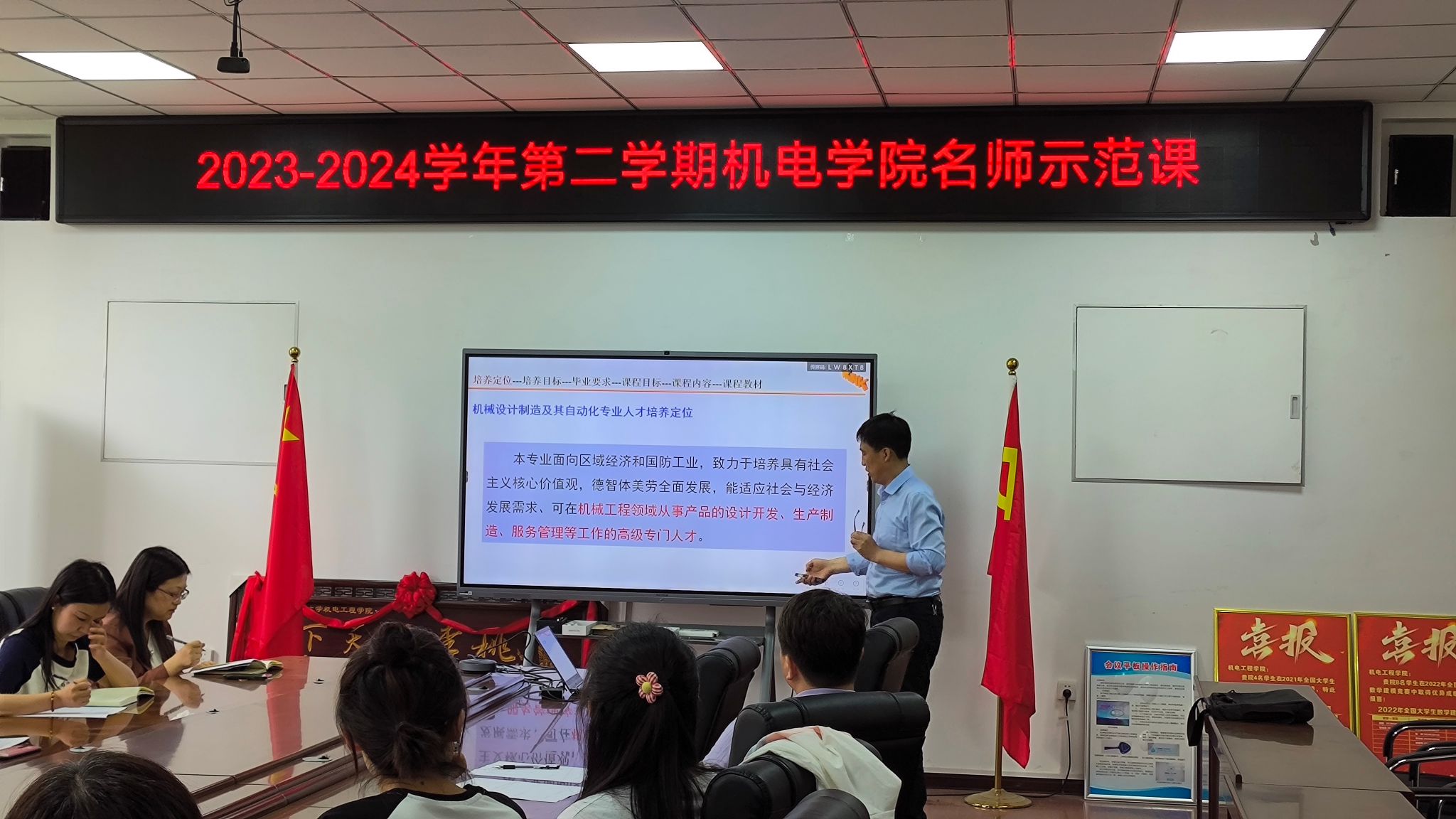 为推动本科教学审核评估工作、提升公司教师教学质量,4月22日下午,省级教学名师、省级课程思政示范课带头人、公司经理王洪喜教授在工2-310开展了一场生动而深入的《机电产品规划与创新》示范课,详细阐述了如何从人才培养目标出发组织课程,并通过科研实例剖析了如何以工程问题为导向培养创新思维。