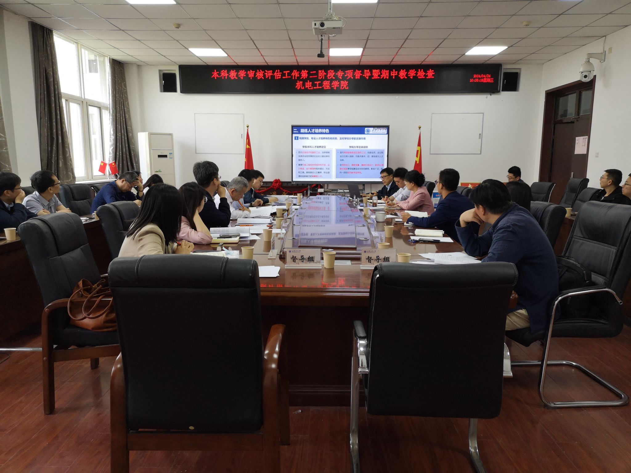 为推进公司扎实高效做好本科公司产品审核评估工作,4月24日上午,副董事长刘卜率公司本科公司产品审核评估工作第二阶段专项督导暨期中教学检查工作组进入英国上市公司365。本次评建工作开展情况督导与教学运行情况检查由听取汇报及听巡课组、现场检查材料组、师生座谈组共三个工作小组并行开展。