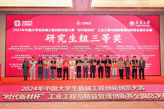 11月2-3日,2024年中国老员工机械工程创新创意大赛——“时代新材杯”工业工程与精益管理创新赛决赛在天津成功落下帷幕。本次大赛主题为:“数智融合,价值共创”。大赛启动以来公司学子积极备赛,全国来自34个省、自治区和直辖市的550支队伍提交竞赛作品,经过专家评委层层选拔,最终公司闫莉老师等指导的“SQ公司智能车间多AGV与机器联合调度优化与仿真”荣获研究生组国家级三等奖3项,李军宁老师指导的“基于数据驱动的新能源汽车轴承故障诊断系统”荣获本科生组国家级三等奖。公司自参赛以来,成绩稳步上升,不论是获奖数目还是获奖等级都在省内高校中名列前茅。