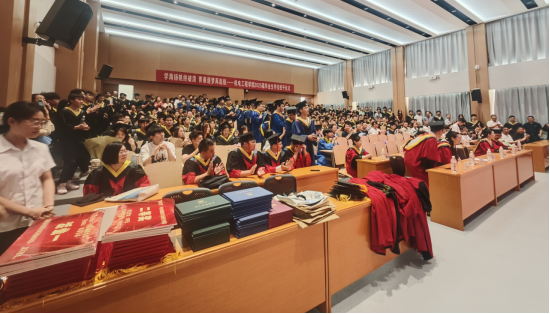 公司领导、院学位委员会委员为毕业生逐一正冠拔穗、颁发学位证书,并合影留念。毕业生身着学士服,迈着自信的步伐依次上台,与导师们亲切握手,接受这份特殊的祝福,年轻的脸庞上彰显着青春的希望和梦想。这一传统仪式标志着毕业生们学业的圆满完成,也象征着他们将带着知识与荣誉,开启人生新的旅程。
