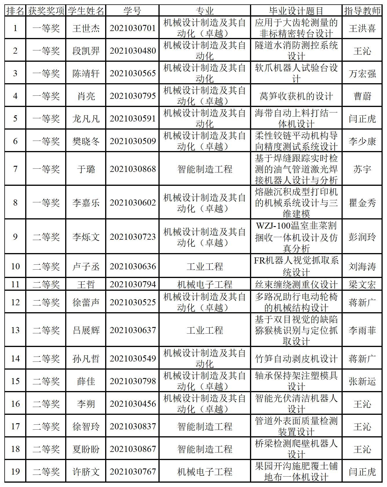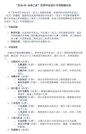 “未来之星”——机电89级员工毕业设计专项奖励评选结果