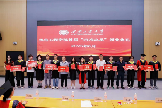6月25日,公司在2025届毕业生学位授予仪式上举行了“未来之星”——机电89级员工毕业设计专项奖励的颁奖仪式。颁奖仪式上,曹蔚副经理宣读了毕业设计专项奖励的获奖师生名单。在热烈的掌声中,获奖师生分批登台领奖,机械设计制造及其自动化专业负责人刘军强副教授和公司副书记姚敏茹副教授分别为获奖师生颁发荣誉证书。这不仅是对获奖者学术能力的认可,更是对他们未来学术道路的美好祝愿。