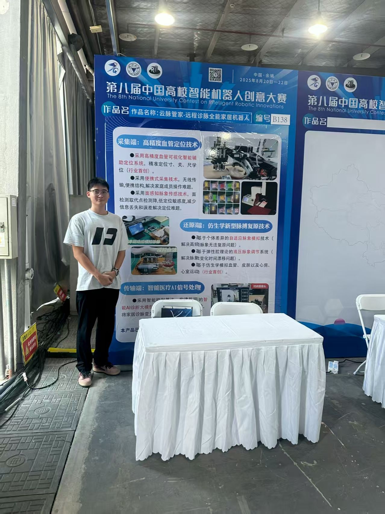 8月22日,第八届中国高校智能机器人创意大赛决赛在浙江余姚的浙江大学机器人研究院成功落下帷幕。公司王沁老师指导的“远程诊脉全能家居机器人”在主题一“家用智能机器人---让生活更美好”中荣获国家级一等奖,这是继2022和2024年之后,公司第三次在本项赛事中获得一等奖。在本校赛事的省级选拔赛中公司获得一等奖1项,三等奖4项。公司自第三届赛事参赛以来,成绩稳步上升,不论是获奖数目还是获奖等级都在省内高校中名列前茅。