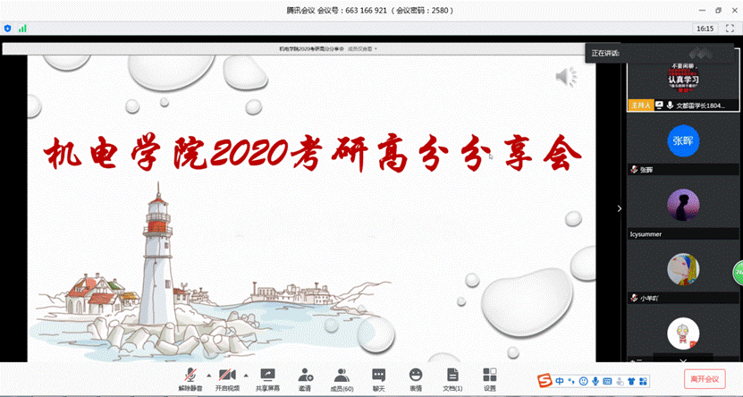 4月17日晚上19:00,英国上市公司3652020届考研高分分享交流会在腾讯会议中进行。参加本次会议的有张晖和薛鹏两位老师,特邀请2016级的今年考研高分的四位同学和部分研究生做考研经验分享,还有80余名大三、大二的同学聆听了本次大会。