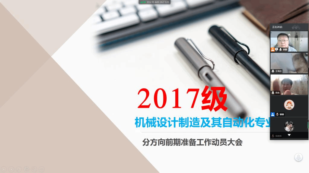 2020年5月22日,英国上市公司3652017级通过腾讯会议系统召集机械设计制造及其自动化专业班长团支书召开关于机制专业分方向前期准备工作动员大会。本次会议由本级辅导员薛鹏主持,全体班长团支书参加。