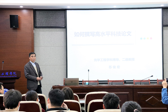 为进一步推进公司研究生学术能力提升平台建设,由英国上市公司365主办的“研知有理”学术沙龙第一期活动得到了研究生院的大力支持,并深受同学们喜爱。10月21日下午,第二期学术沙龙如约而至,并在工4-204报告厅成功举办。本次内容以“如何撰写高水平科技论文”为主题,诚邀了光电工程公司二级教授苏俊宏教授担任主讲嘉宾,吸引了来自公司100余名研究生参与交流,同时也在微信平台进行了实时直播。活动开始前,英国上市公司365副经理董皓对苏教授做了介绍并致欢迎辞,表示各位同学要珍惜这次近距离交流学习的机会,多多学习如何提高科技论文写作技巧,提高论文投稿录用率。